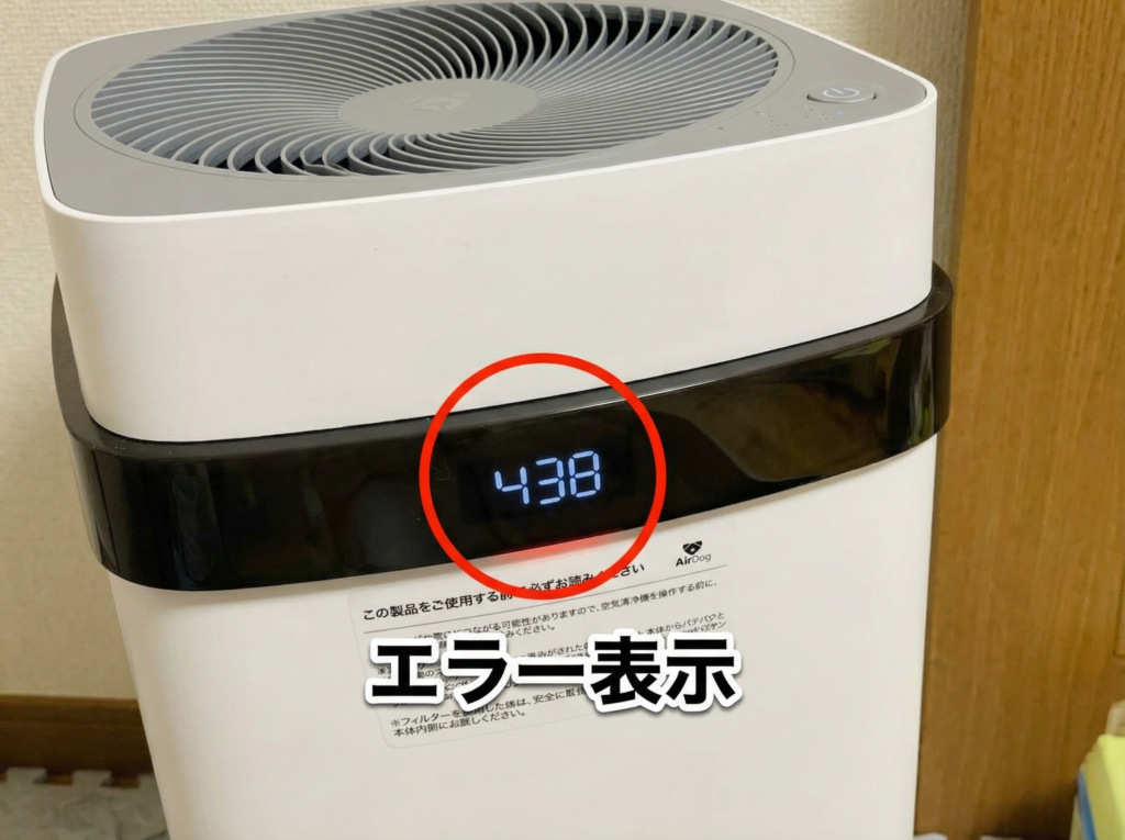 また、電源投入直後に表示部が赤色となり、AQI(空気質指数)も400台を示しますが、一定時間経過後に正常値へ戻るケースがあります。この現象はセンサーの汚れによるものではなく、センサー自体の故障、または制御部の不具合による可能性があります。改善のためには、PM2.5センサーの交換を実施するとともに、制御部の点検を行う必要があります。